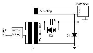 - The mains transformer Tr. With its output voltage of 2100Veff and