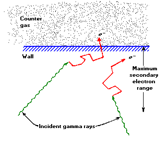 Figure 1. The principal mechanism by which gas-filled counters are sensitive to gamma- rays involves ejection of electrons from the counter wall. Only those interactions that occur within an electron range of the wall's inner surface can result in an output pulse.