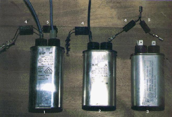 1,2: cap 1uF/2100Vac (i.e. 3kV peak), from microwave oven.