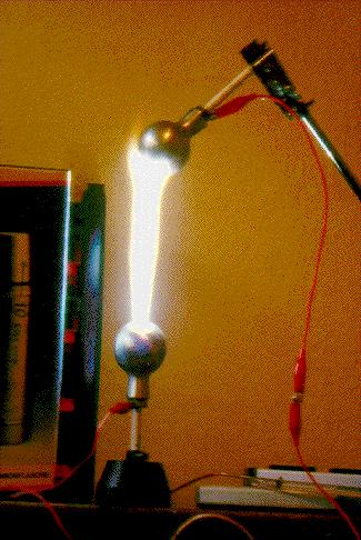 This is definitly my favourit use of high voltage :-). Note: sparks are near instantaneous discharges, whereas arcs are continuous. To get long sparks, you need high voltages, but not necessarily high discharge currents; for long arcs, you need only a moderatly high voltage, but high discharge currents. To initiate the discharge, move the electrodes together until the voltage arcs over, then pull them apart again. Some examples: