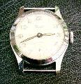 Top: watch from the 1950s, radium paint marks on face and hands. Count rate at 5cm distance 400/min with front glass, 1000/min without.